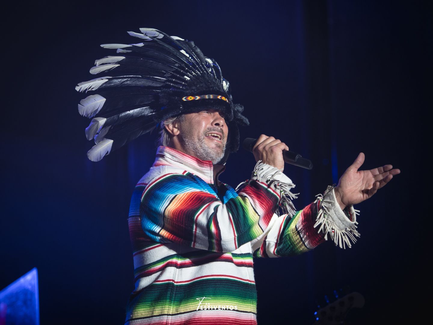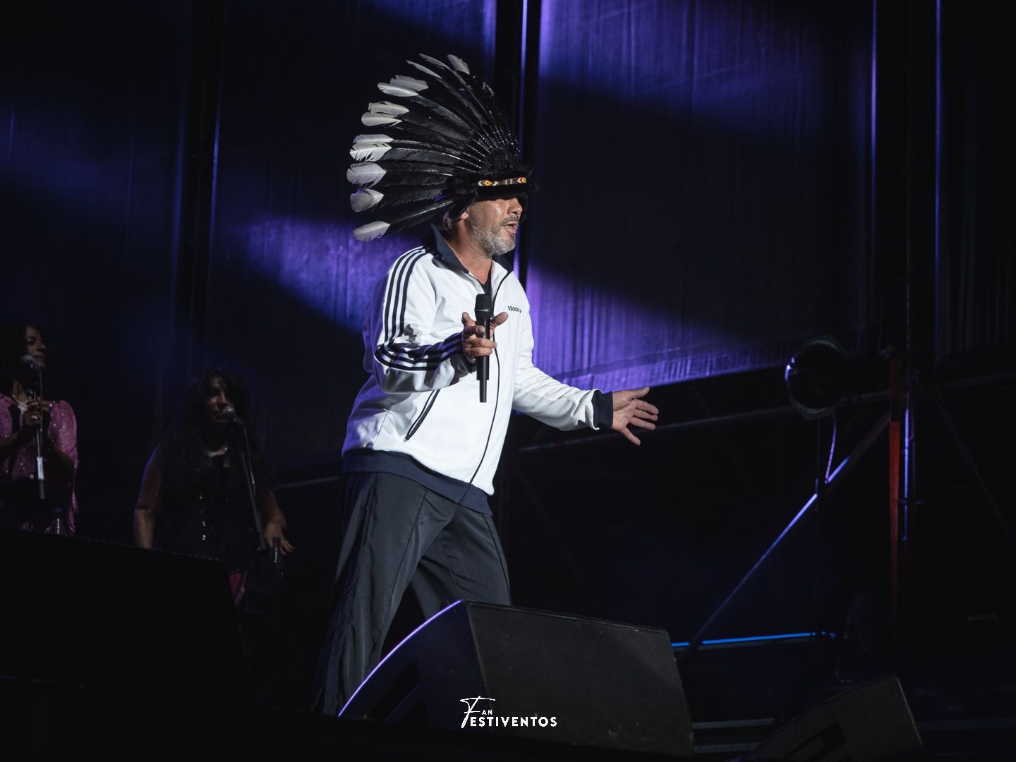 El ansia y la expectación del público por ver a la banda londinense era palpable, evidenciado por los silbidos que empezaron a sonar a las 22:15 horas, cuando aún no habían aparecido en el escenario. Abundaban tocados de plumas entre los espectadores, un claro indicio del fervor que despiertan Jamiroquai, pero solo uno tenía relevancia. Estos adornos son, al parecer, un símbolo de autoridad. Por tanto, y como era de esperar, Jay Kay hizo su entrada estelar con el tocado más grande del Río Babel, dando inicio al gran espectáculo de funk del evento.