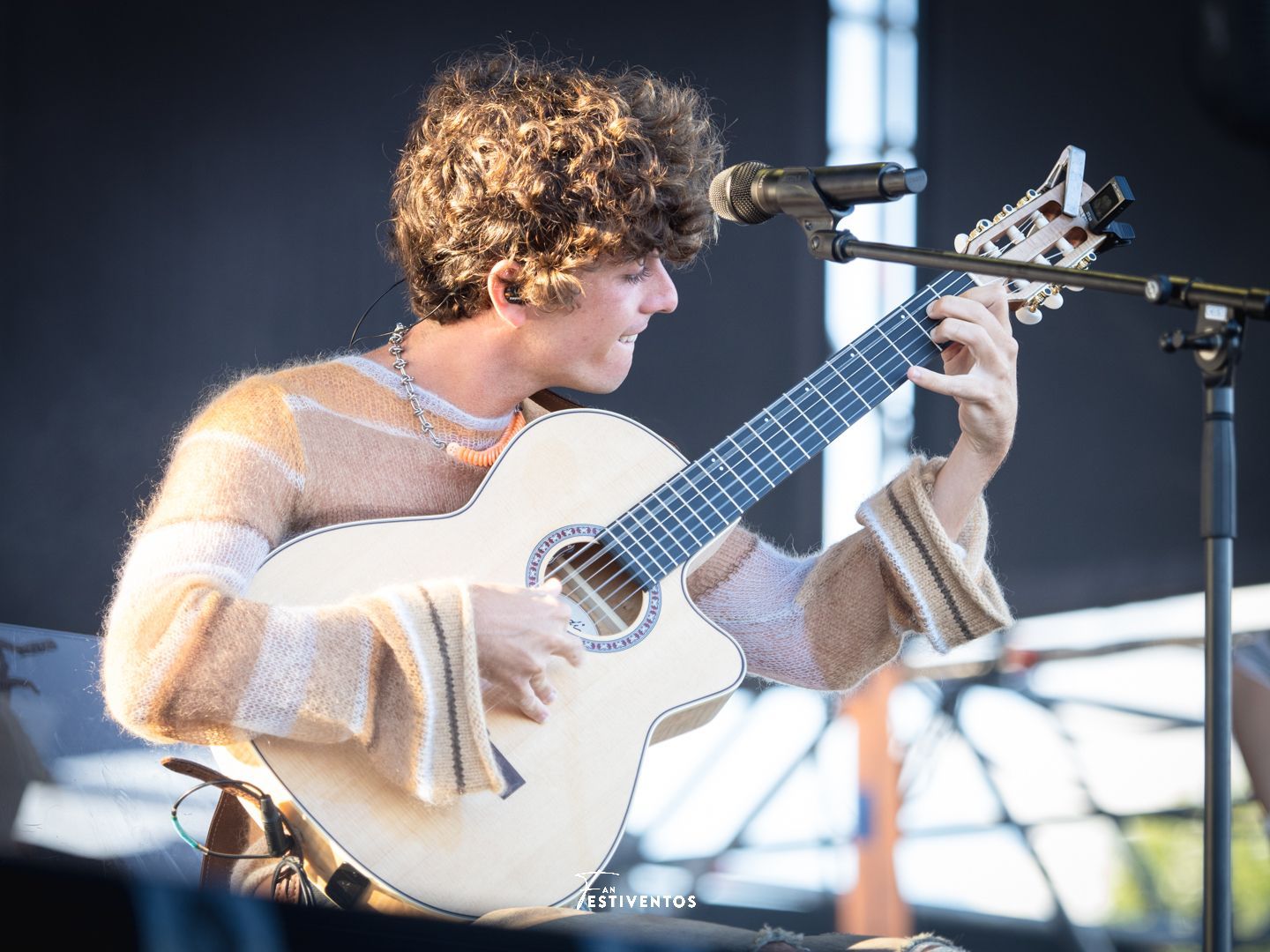 El escenario Johnnie Walker fue el anfitrión del recital personal y cercano del cantante y guitarrista Álvaro Lafuente, más conocido en el ámbito de la música como Guitarricadelafuente. Este joven talento de Castellón, que se ha convertido en uno de los artistas más aclamados en la escena musical reciente, ofreció su actuación sentado, mayormente, con su guitarra acústica, y respaldado por otros músicos.